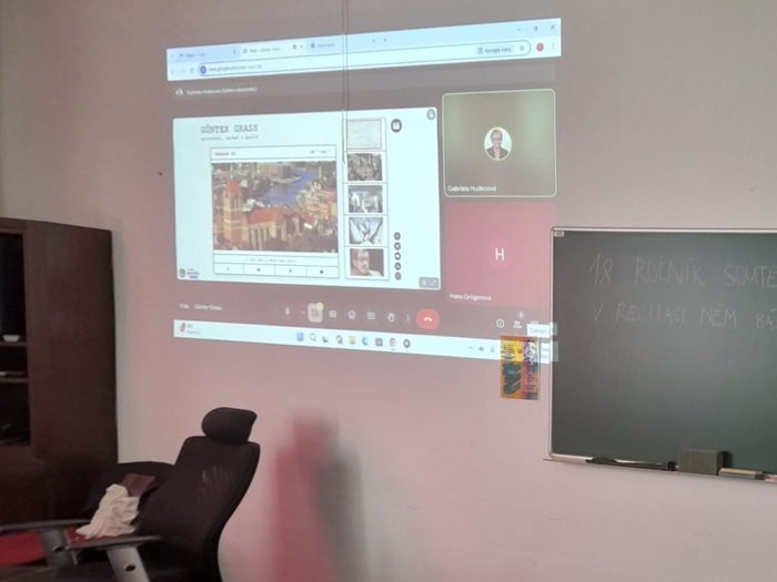 Dopoledne strávené poslechem recitace německy psaných textů se obvykle nese v přátelském duchu a bývá doprovázeno programem věnovaným německy píšícím autorům. Ani letos tomu nebylo jinak, byť se to neobešlo bez drobného zádrhele. Zdálo se, že prezentace věnovaná Günteru Grassovi půjde “do kopru”, neboť nemoc si nevybírá, ale vzpomínka na covid nám připomněla, že i na dálku se lze podělit o zajímavosti, provázející život a tvorbu autora, který je jedněmi adorován, jinými zatracován, jedněmi oceněn Nobelovou cenou za literaturu, jinými vyzván k tomu, aby ji vrátil, jedněmi vnímán jako humanista a bojovník za demokracii, jinými kritizován za dlouholeté mlčení o své příslušnosti k jednotkám Waffen-SS.