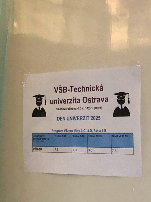 Den univerzit za účasti Ostravské univerzity, VŠB Technické univerzity Ostrava, Masarykovy univerzity Brno a Univerzity Palackého v Olomouci našim studentům předmaturitních ročníků nabídl ucelenou prezentaci dané vysoké školy a také odpovědi na spoustu otázek. Nicméně přidal i něco navíc a to inspiraci a motivaci jít si za svým snem a studovat to, co mě opravdu baví a v čem jsem dobrý.