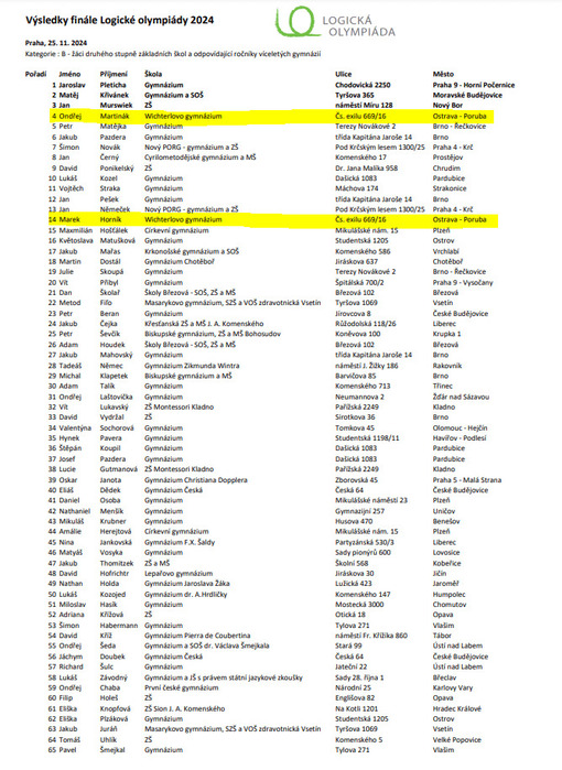Naši finalisté (viz Krajské kolo) ten den poměřili své logické dovednosti s nejnadanějšími dětmi a studenty z celé republiky prostřednictvím psaného a promítaného testu. A výsledek? ÚŽASNÝ!!!