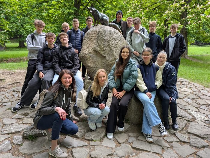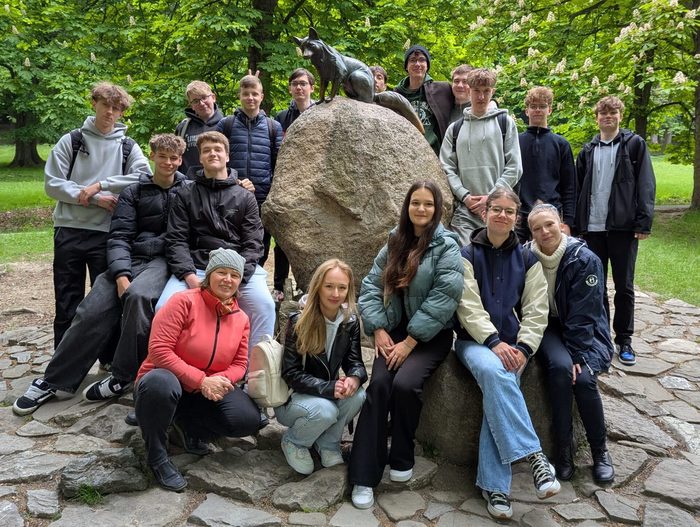 Poté jsme pokračovali do Hukvaldské obory, kde jsme se prošli přírodou až ke známé soše lišky Bystroušky, inspirované Janáčkovou operou Příhody lišky Bystroušky.