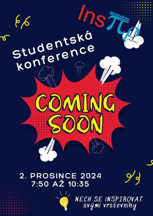 Představujeme vám letošní program studentské konference #INSPIRO 2024. Na všechny se těšíme už v pondělí 2. prosince 2024 první až třetí vyučovací hodinu. Harmonogram najdete v odkazech viz níže. Dále je zveřejněn ve všech prostorách gymnázia a na Facebooku školy. Přijďte mezi nás a podpořte tak své spolužáky, kteří vám mají rozhodně co říct a předat.