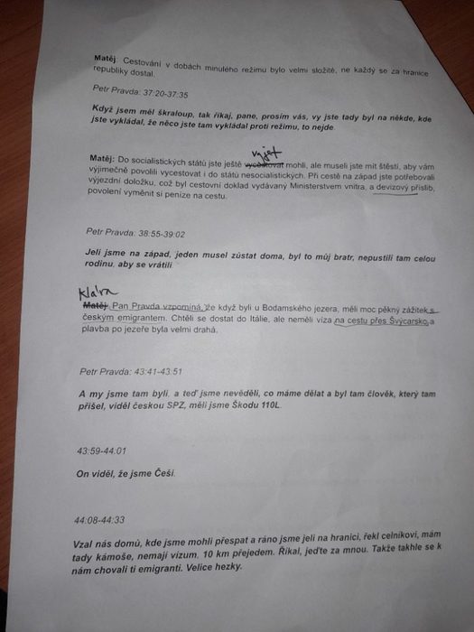 Klára Ptáčníková a Matěj Bystroň z kvarty B se odvážně pustili do projektu nadace Post Bellum Příběhy našich sousedů. V rámci dosavadní práce nahráli asi dvouhodinový rozhovor s panem Petrem Pravdou, uznávaným plicním lékařem a zároveň naším milým pamětníkem. Pan Pravda je Matějův dědeček, takže spolupráce s ním byla o to přínosnější.