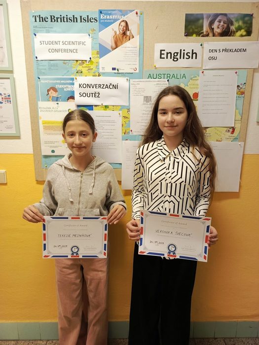 Čestné uznání za nadstandardní výkon si odnesla i Sofie Peer ze 3.A.