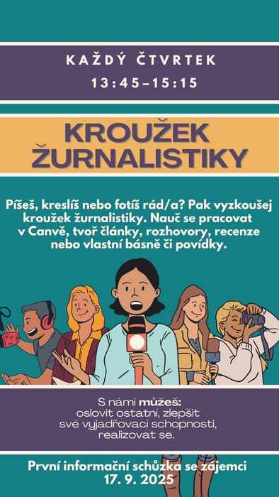 Žurnalistický kroužek je určen všem žákům nižšího gymnázia od prim po kvarty. Nabídne žákům možnost vyzkoušet si práci redaktora, tvořit články, rozhovory, zprávy nebo reportáže, případně i podcast. Uplatnit lze i vlastní literární či výtvarnou tvorbu. Schůzky redaktorů školního časopisu Ga-Ma-Ja pod vedením Mgr. Gabriely Hudecové a Mgr. Moniky Hradecké budou probíhat ve čtvrtky. Je možné stát se i dopisovatelem, grafikem, ilustrátorem.