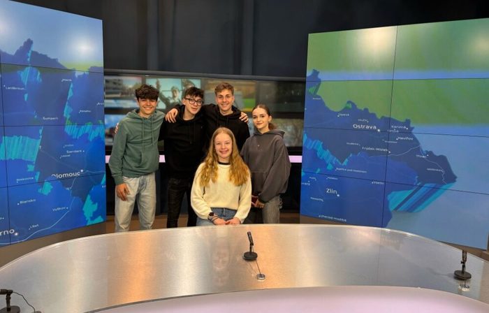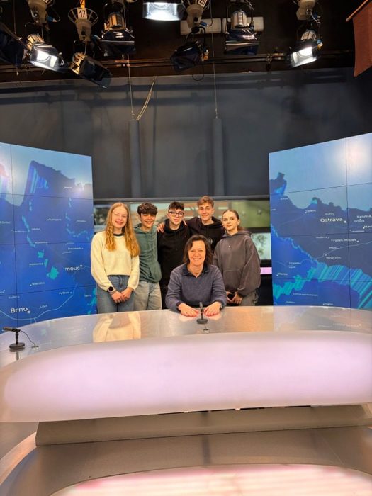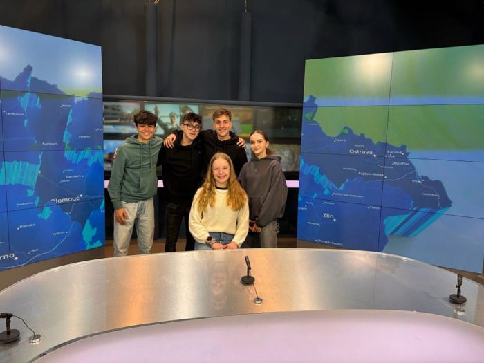 Pětice vybraných žáků z kvarty B dostala v úterý 2. dubna jedinečnou příležitost nahlédnout do zákulisí České televize v Ostravě. Exkurze byla pro mladé nadšence médií nezapomenutelným zážitkem plným nových poznatků a zajímavostí. Na žáky čekala prohlídka dvou studií, kde se natáčejí oblíbené pořady jako Dobré ráno s Českou televizí nebo Sama doma. Nechyběl ani zpravodajský prostor, kde si mladí novináři mohli vyzkoušet práci redaktorů a techniků, a dostali se i do střižny. Následně jsme měli možnost přečíst zprávy přímo z čtecího zařízení nebo měnit osvětlení ve studiu.