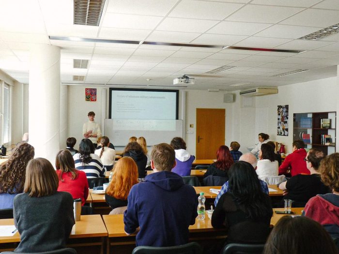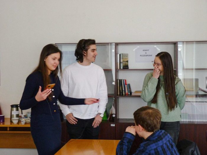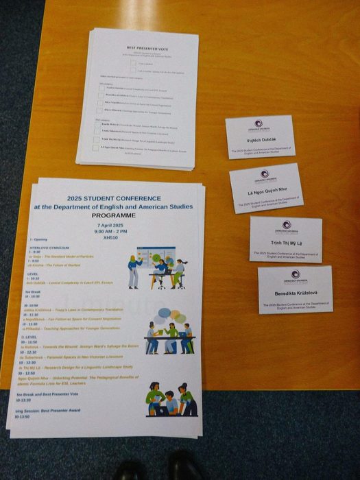 V pondělí 7. dubna se skupina našich studentů vydala na Katedru anglistiky a amerikanistiky Ostravské univerzity, aby se zúčastnili Studentské konference v angličtině. Dva naši talentovaní žáci, Viktor Sieja z kvarty B a Jakub Kosina z 2. C, reprezentovali školu na poli prezentačním, zástupci školního časopisu pak mají za úkol připravit z prestižní akce reportáž.