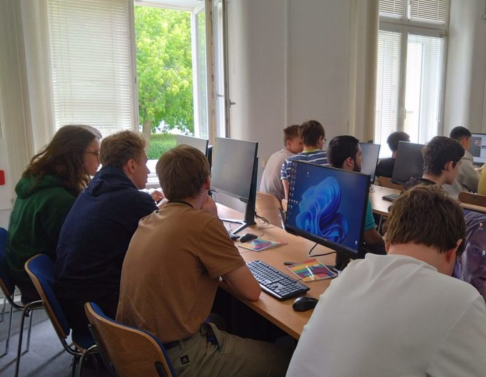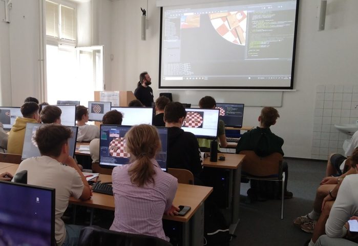 V Ústavu informatiky Slezské univerzity proběhly přednášky o kouzlech algoritmů a programovacím jazyce a praktický workshop s názvem Jak se dorozumět s robotem, jejichž cílem byla příprava na soutěžní odpoledne. Soutěž probíhala v aplikaci Webots, kde bylo pro soutěžící připravené prostředí, ve kterém se snažili naprogramovat virtuálního robota tak, aby projel bludištěm a následně pokračoval po linii černé čáry.
