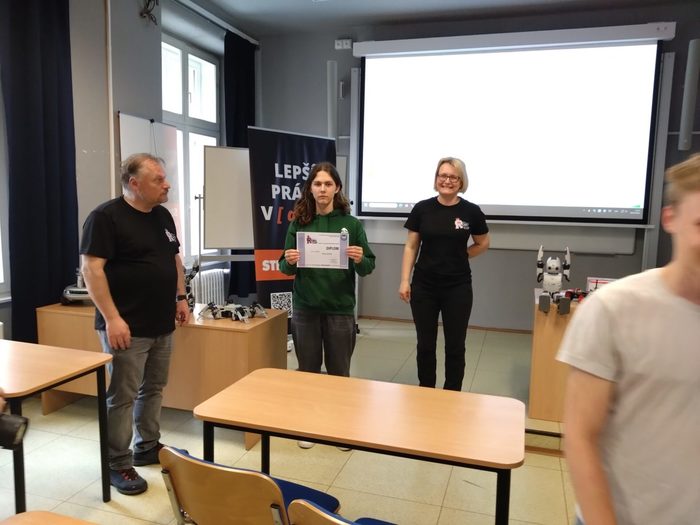A my můžeme pogratulovat Filipovi Kubíkovi za úžasné 2. místo (vítězný “robot” jej přestihl jen o 6 s) a doufáme, že všem zúčastněným byla tato akce cennou zkušeností, jak propojit teoretické znalosti s praktickým řešením reálných problémů.