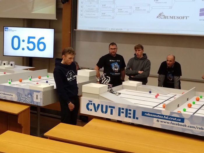 Jako každým rokem, i letos naši studenti přijali výzvu v podobě účasti na Robosoutěži, kterou již dlouhodobě organizuje FEL ČVUT Praha. Za naši školu byly přihlášeny týmy Ozzáci (Filip Kubík, Tobiáš Hrivňák a František Malenovský – toho nakonec zastupoval Dat Nguyen, všichni 5.B) a Ferenc Perenc (Petr Němec, Michal Matoušek a Marco Kormanik, všichni 7.B).