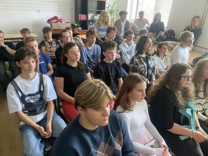 Studenti se dozvěděli, jak se James o možnosti stipendia dozvěděl, co obnášelo přijímací řízení, jak vypadal jeho studentský život a jak bylo těžké skloubit americkou školu se souběžným studiem na Wichterlově gymnáziu.