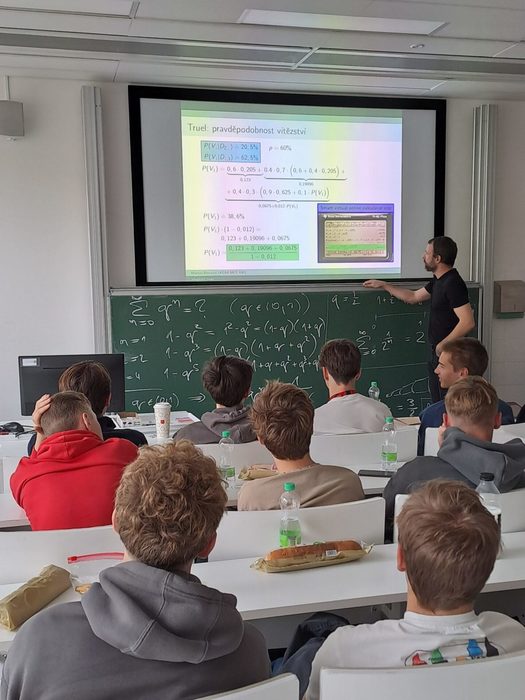 “Středeční odpoledne jsme strávili v Troji. S Martinem Rmoutilem hledali studenti optimální strategii v magickém truelu. O modelech klimatu se pak dozvěděli od Michala Beldy. Katedru fyziky nízkých teplot studentům představil Emil Varga. S možnostmi výzkumů pomocí oční kamery seznámila studenty Martina Kekule.