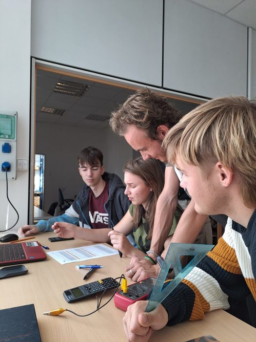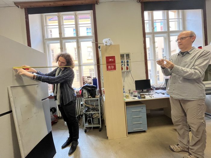 Páteční dopoledne měli studenti možnost sami experimentovat v Interaktivní fyzikální laboratoři pod vedením Marie Snětinové, Lydie Cehákové a Jany Legerské. S Pavlem Böhmem si pak na Katedře didaktiky fyziky vyzkoušeli pokusy s měřicím systémem Vernier.”