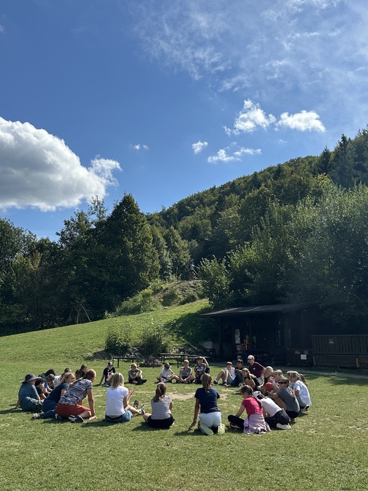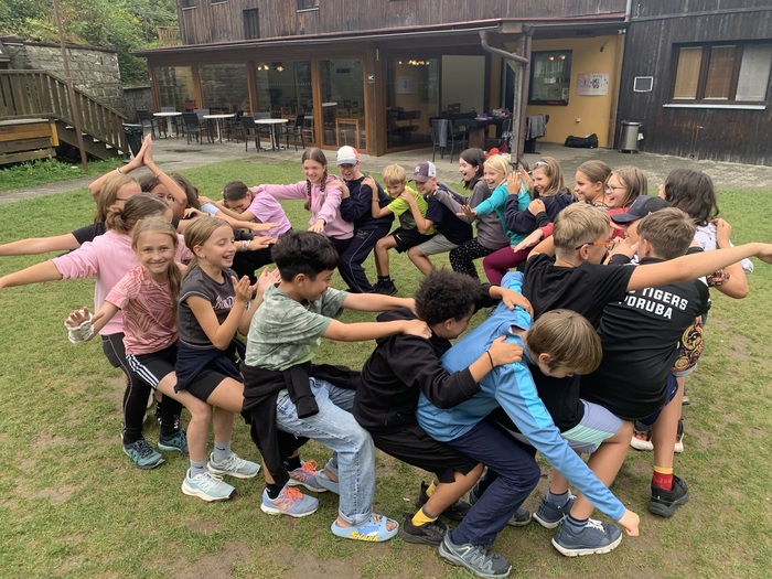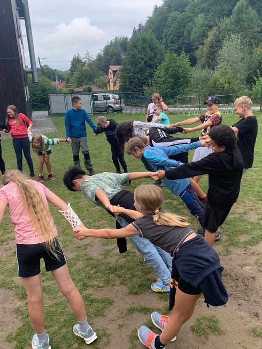 Na začátku školního roku jsme s žáky primy vyrazili na adaptační kurz do Komorní Lhotky. Cestu jsme absolvovali autobusy a po příjezdu nás čekalo velmi příjemné ubytování v krásném prostředí a také výborné jídlo. Během kurzu jsme se věnovali celé řadě aktivit – čekalo nás mnoho týmových úkolů a organizovaných her, které pomáhaly budovat vzájemnou důvěru, spolupráci a poznávání nových kamarádů. Nechybělo ani spoustu zábavy a smíchu. Velký úspěch měly kromě organizovaných her také aktivity, které si děti ve volném čase samy organizovaly. Velmi rychle vytvářely skupinky a hrály plážový volejbal nebo fotbal, což přispělo k utváření nových přátelství a posílení týmového ducha. Oproti předchozím adaptačním kurzům jsme s dětmi vyjeli přes noc, a tak také večer pokračovalo navazování nových přátelství na pokojích :-) Všichni si odvážíme spoustu zážitků, nových zkušeností a hlavně pocit, že jsme skvělý tým.