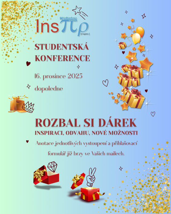 Pozvánka na studentskou konferenci INSPIRO, která se uskuteční v úterý 16. prosince od první do čtvrté vyučovací hodiny.