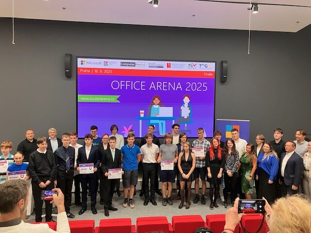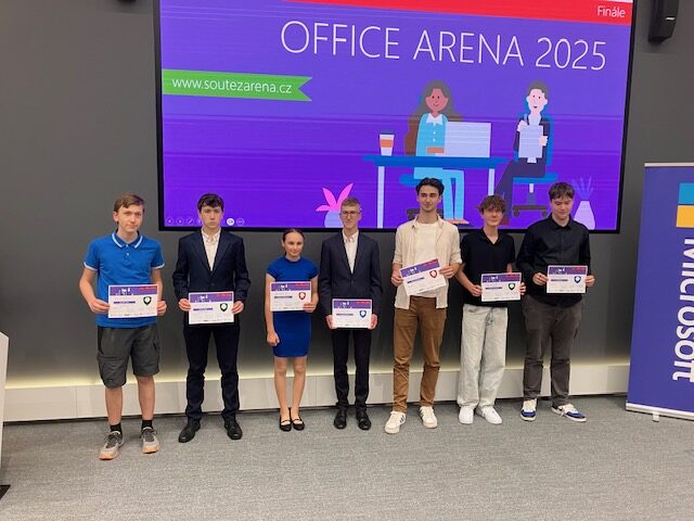 V pondělí 16. června 2025 jsme se vydali do Prahy na finále soutěže Office Aréna, která prověřuje dovednosti studentů v práci s aplikacemi Microsoft Office. Soutěž je tříkolová a do finále se dostane vždy jen jeden zástupce z kraje.