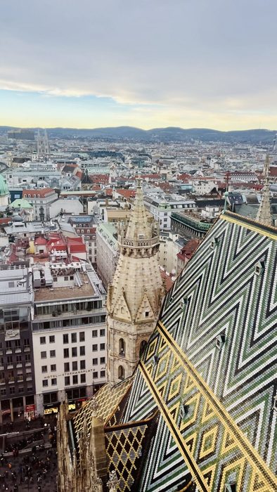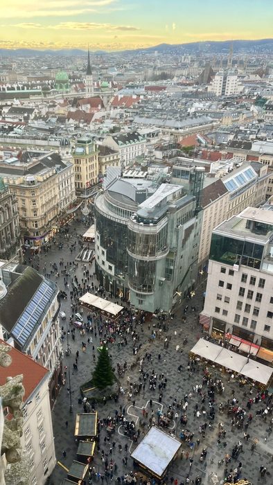 Přímo v historickém centru Vídně u katedrály Stephansdom stojí několik vánočních stánků, pro které je charakteristická vůně pečených brambor, kaštanů a sladkých pražených mandlí. Letos jsme vystoupali 343 schodů a vychutnali si tak výhled z Jižní věže, která je vysoká necelých 140 metrů.