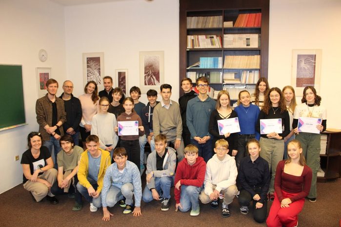 Kromě stupňů vítězů jsme udělili i dvě čestná uznání, a to Anetě Pejčochové z 1. A za zdařilé ztvárnění Žáčkovy básně Jak šli bratři pro kládu a Davidu Strykovi za přínos v podobě vlastního textu.