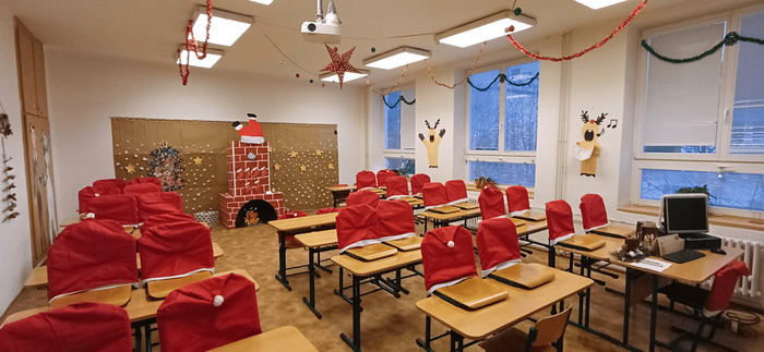 Již druhým rokem se u nás v průběhu prosince uskutečnila soutěž o nejlepší vánoční výzdobu třídy, pořádáná Studentským parlamentem. V posledním předvánočním týdnu se nepedagogičtí pracovníci školy vydali jednotlivé učebny hodnotit. Výzdoba se oproti loňskému adventu opět rozrostla a mohli jsme tak obdivovat vše od jednoduchých prvků vlastní výroby po propracované celky.