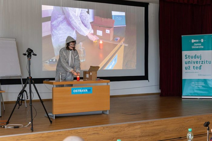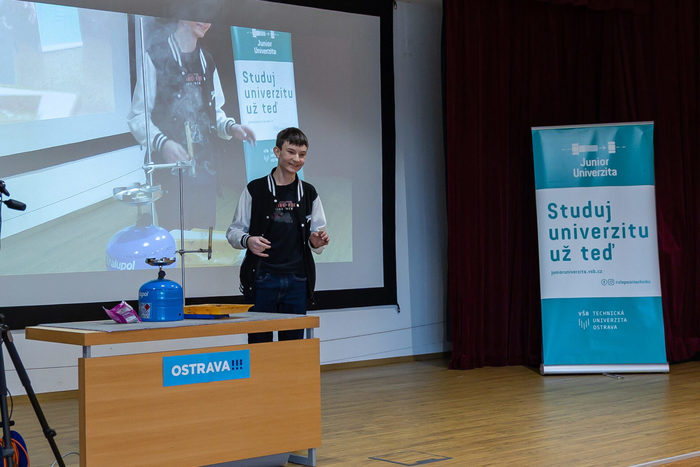 V měsíci březnu proběhla na VŠB TUO jako každoročně soutěž mladých popularizátorů vědy – zadáním bylo připravit si maximálně čtyřminutové vystoupení na libovolné téma z oblasti fyziky, chemie, biologie, techniky či matematiky a toto téma poutavou formou přiblížit posluchačům. Výprava naší školy čítala devět nadšenců soutěžících jak individuálně, tak v týmech.